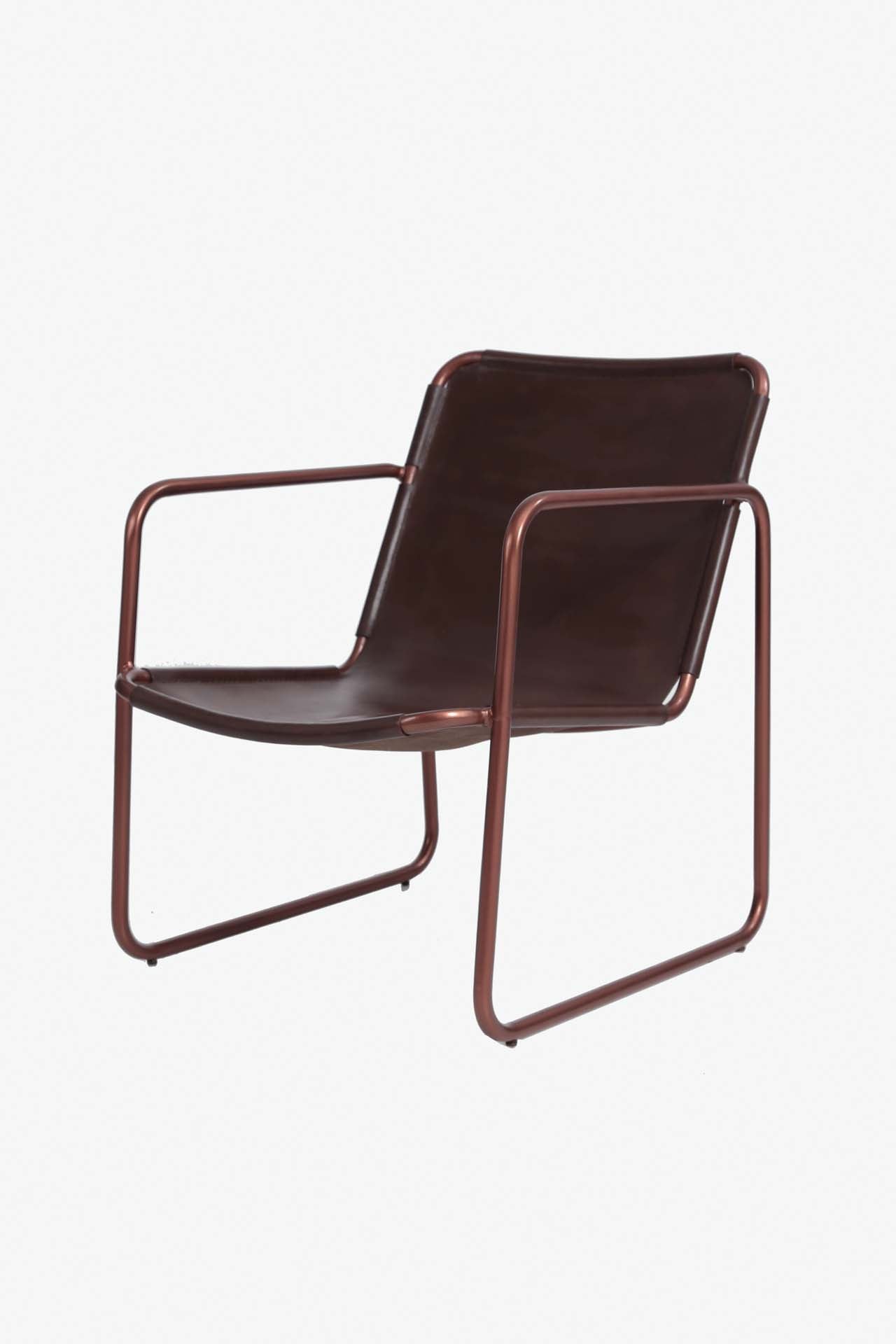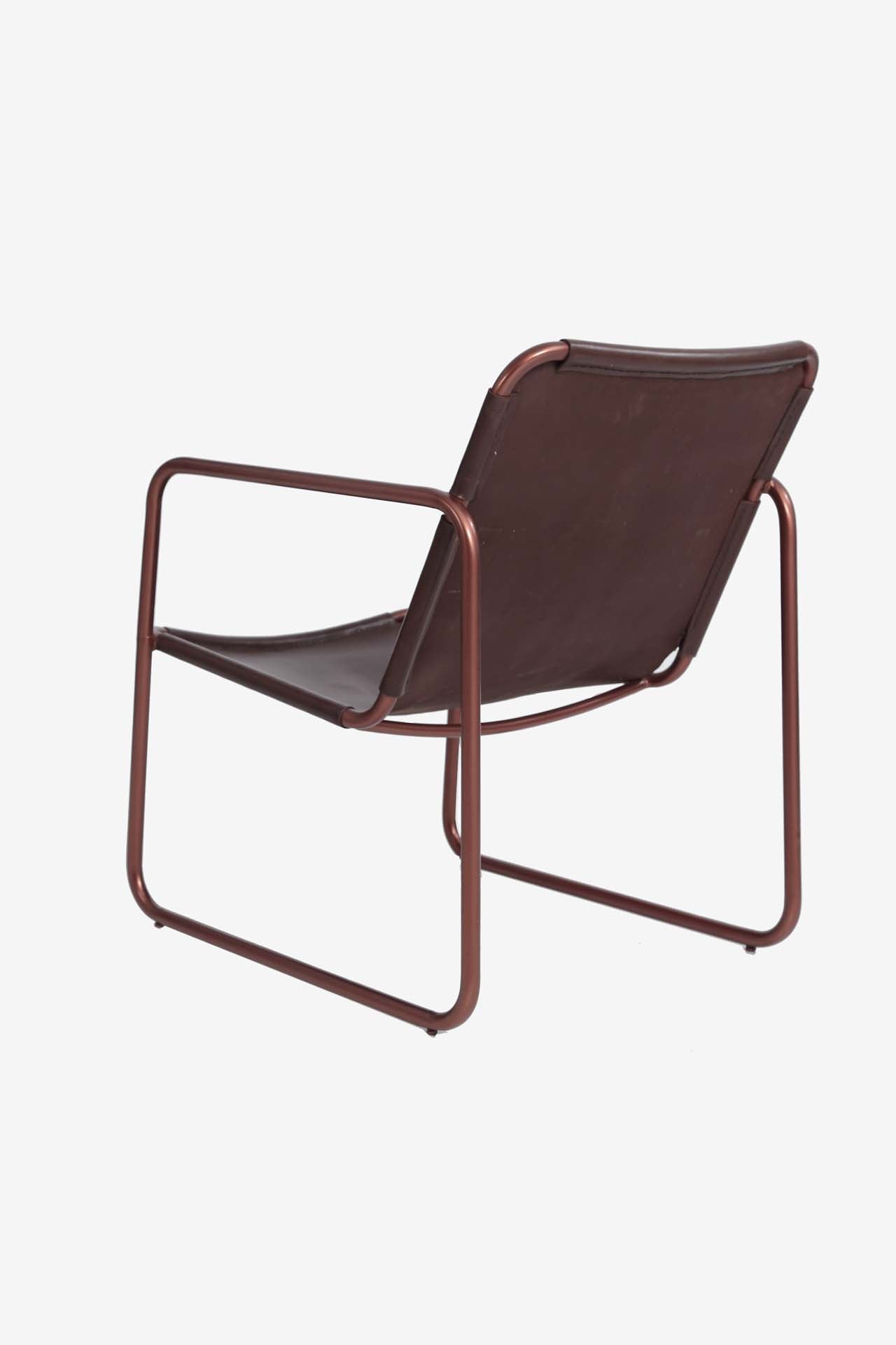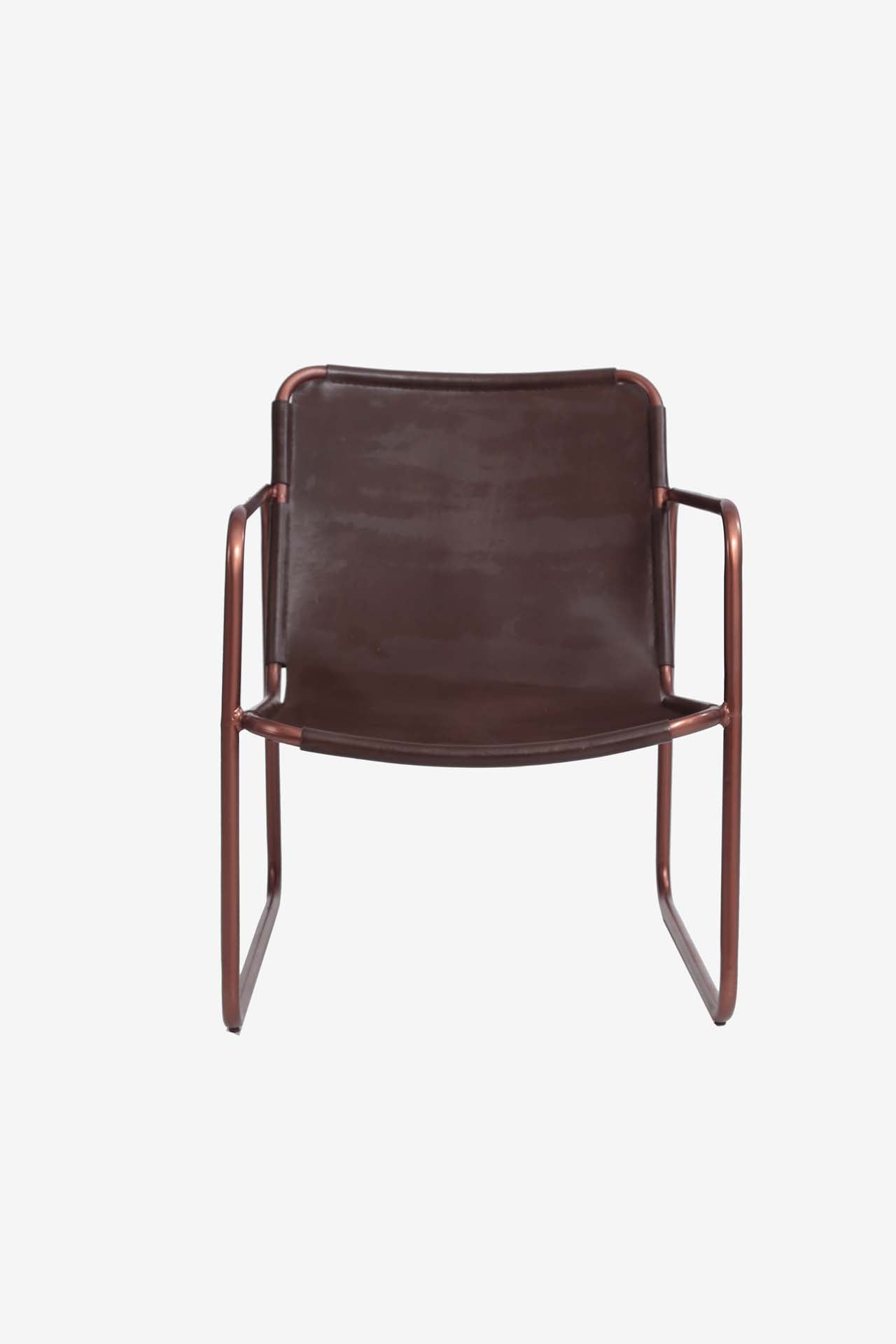 Πολυθρόνα Alda (57x70x75cm) από δέρμα αγελάδας σε σκούρα καφέ απόχρωση με σιδερένιο σκελετό 20mm. Ύψος καθίσματος: 36 cm. Προτείνεται μόνο για εσωτερικό χώρο. Συσκευασία 1 δέμα ανά τεμάχιο.