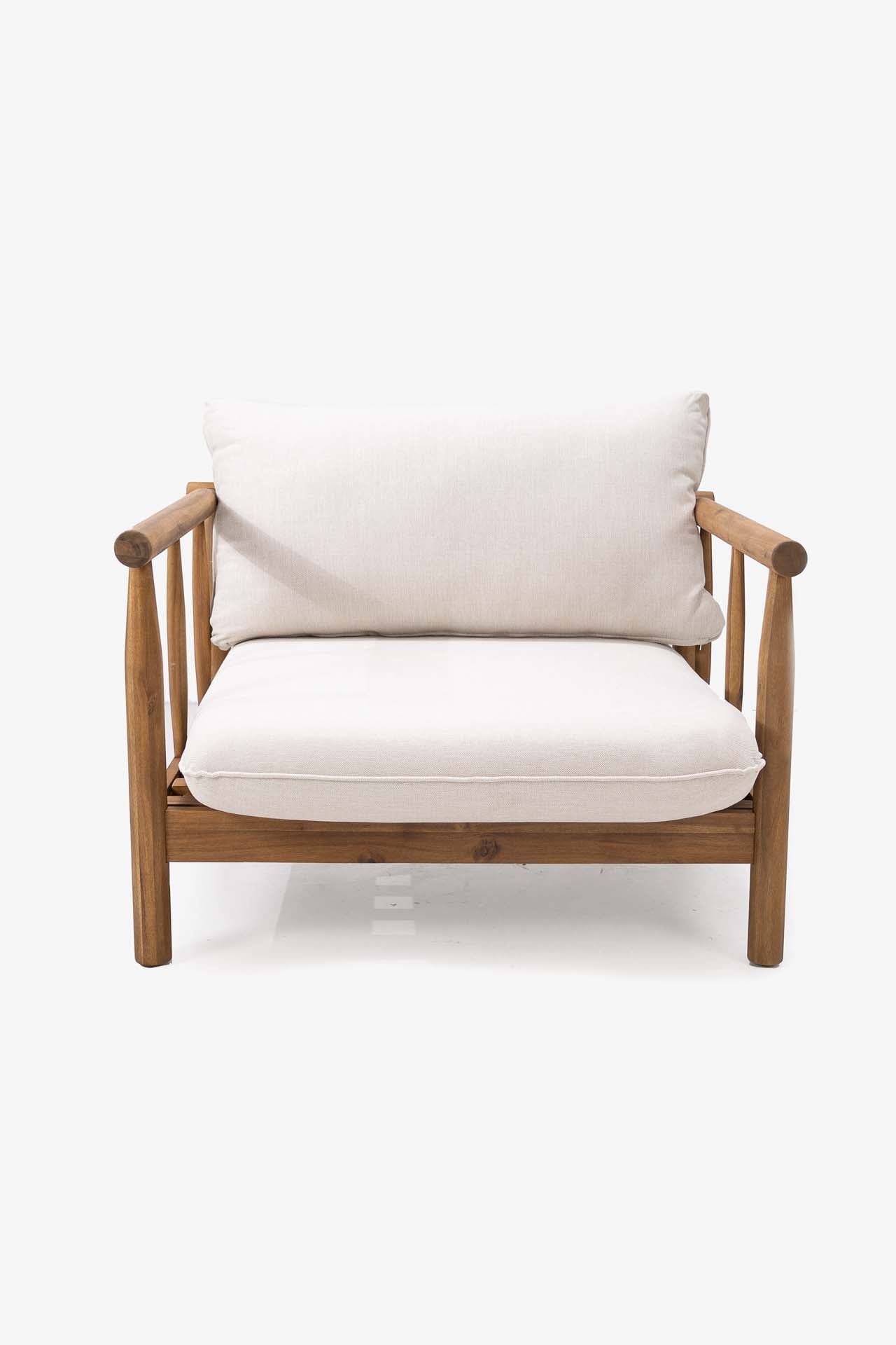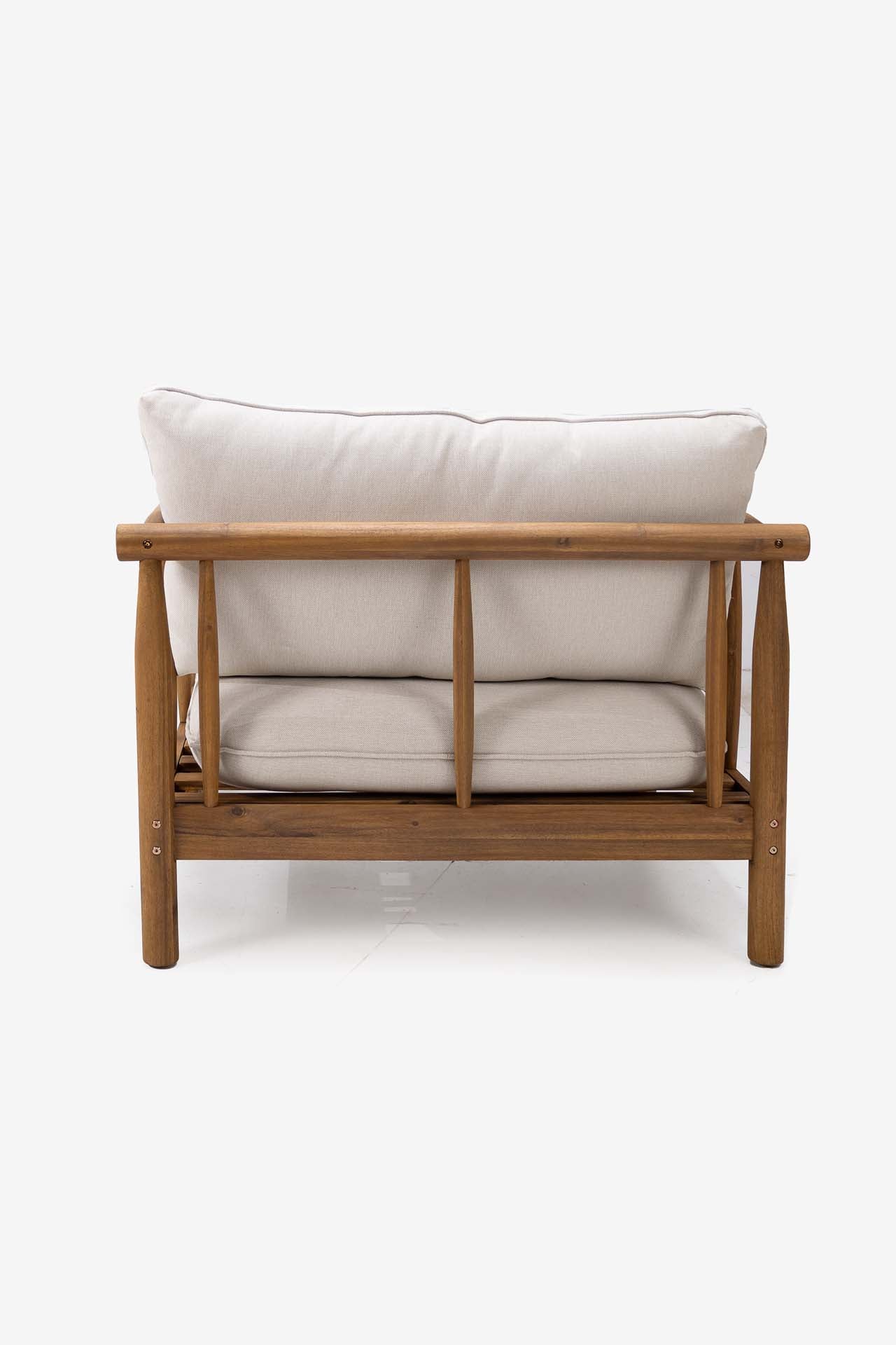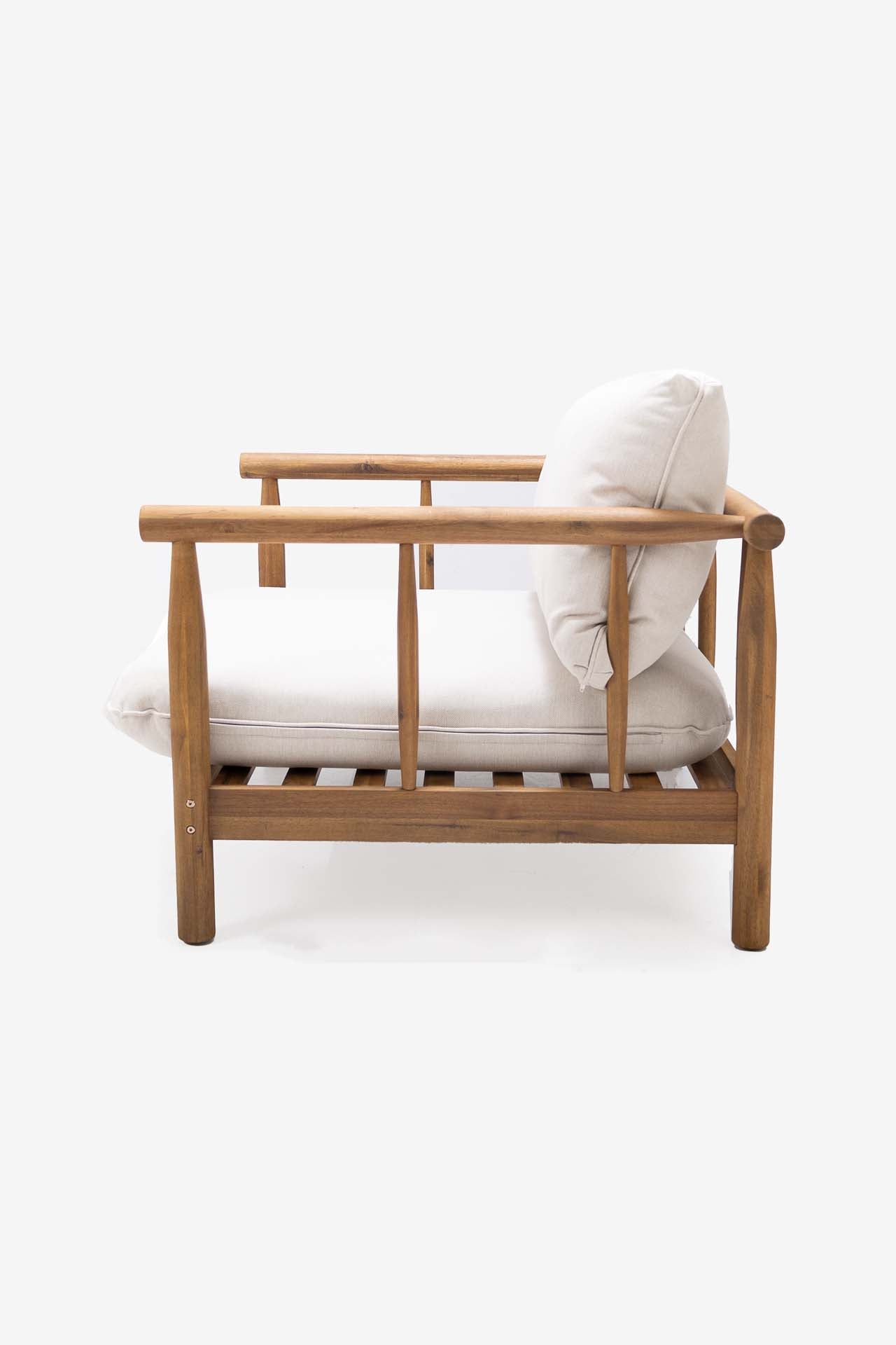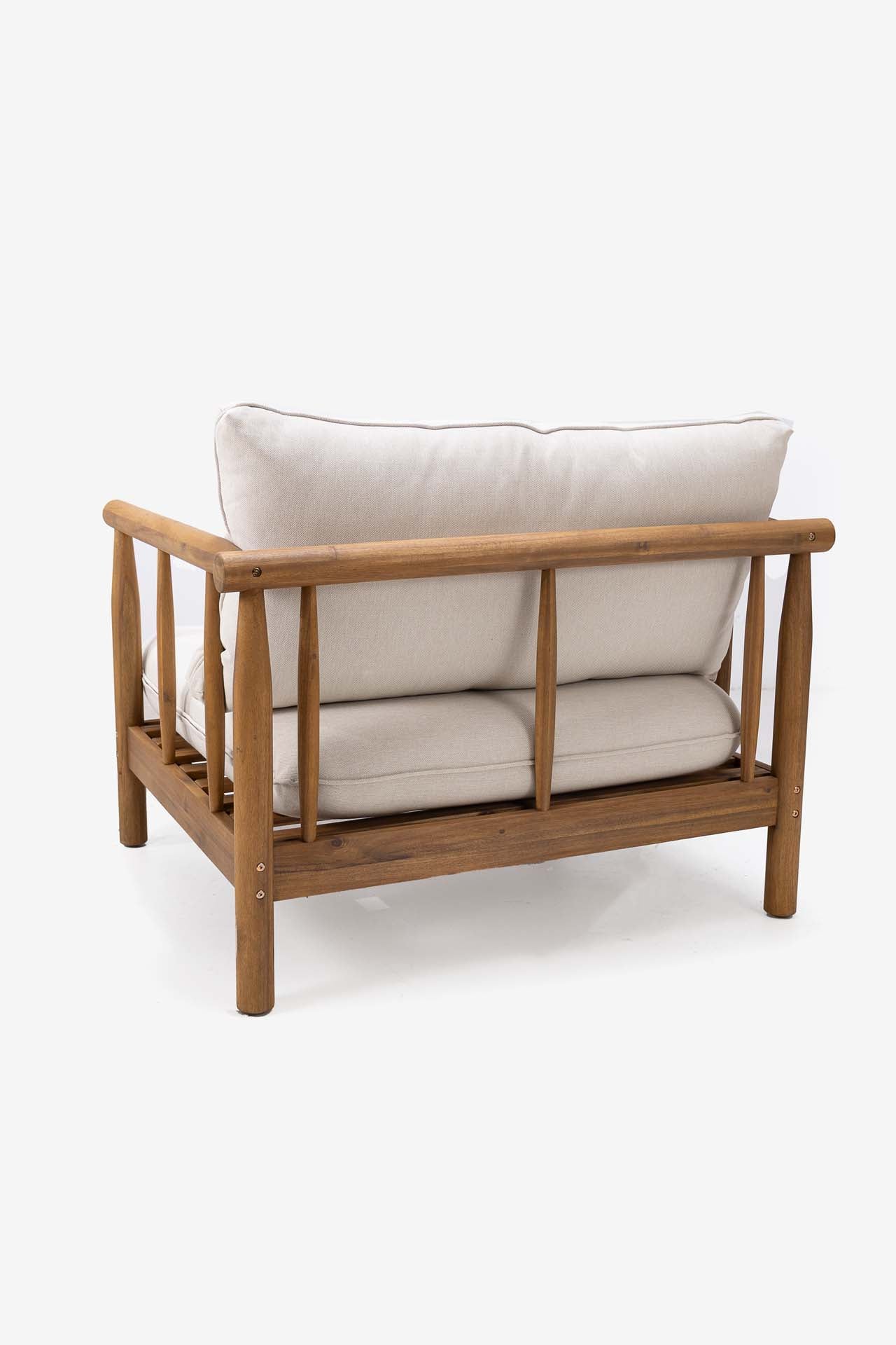 Πολυθρόνα Lisa (97x91x87cm) από ακακία σε φυσικό χρώμα. Τα μαξιλάρια περιλαμβάνονται. Κατάλληλο και για εξωτερικό χώρο. Ύψος καθίσματος: 41 cm. Ύψος μπράτσου: 66 cm. Ύψος χωρίς μαξιλάρι: 68 cm. Συσκευασία 2 τεμάχια ανά δέμα.