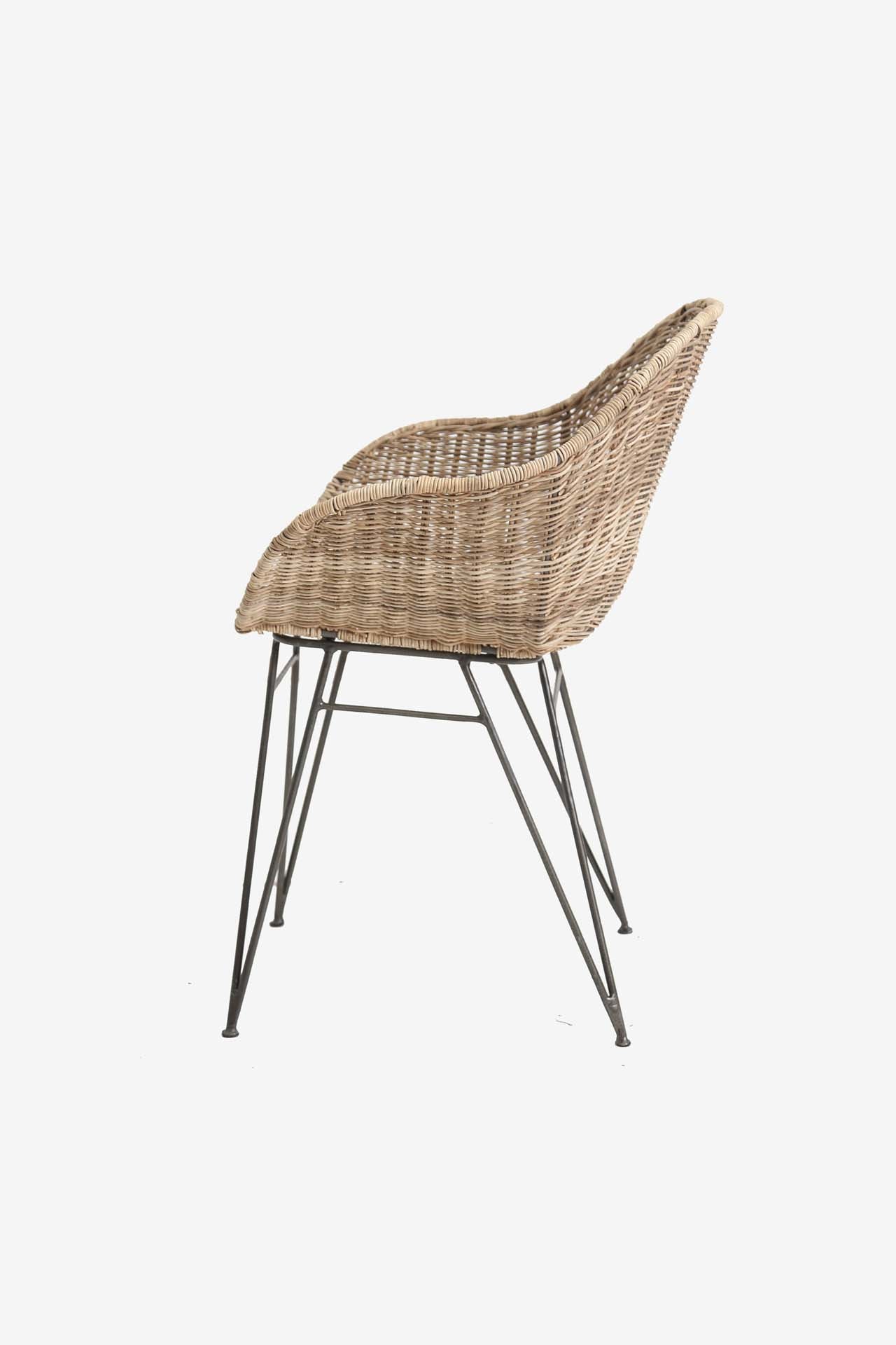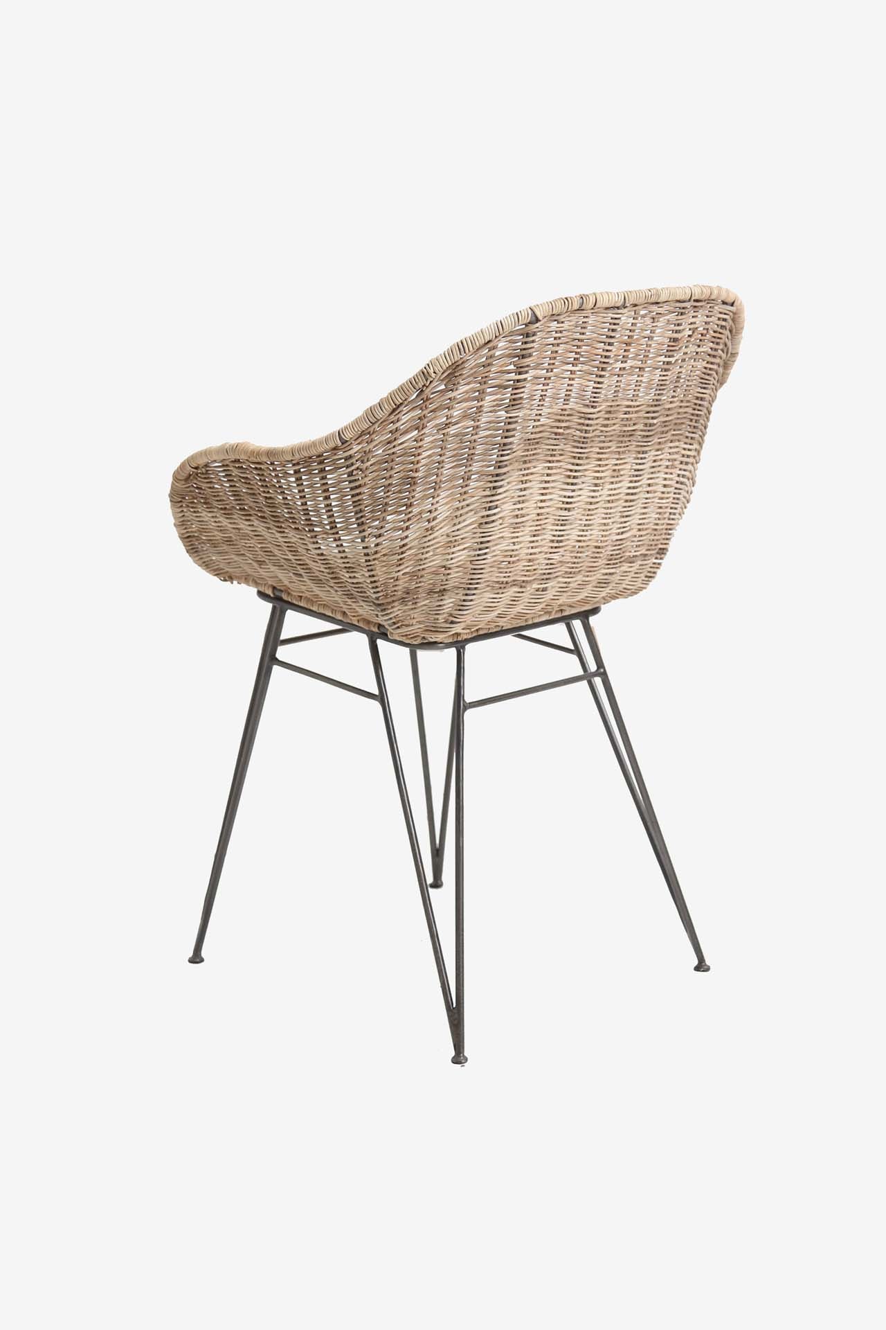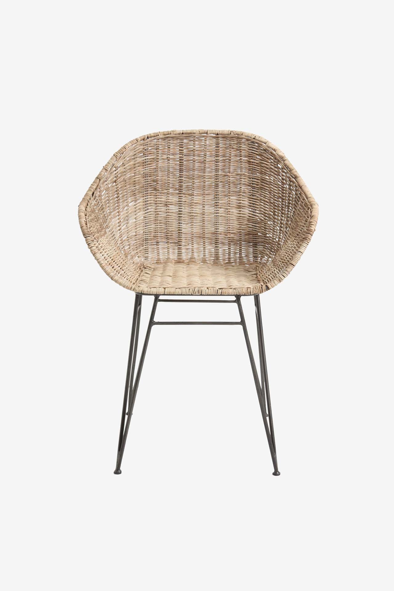Καρέκλα Τραπεζαρίας με μπράτσα Point (60x52x80cm) από ρατάν 2 – 4mm με σιδερένια πόδια βαμμένα μαύρα σε σωλήνα 11mm. Αν και η καρέκλα μπορεί να χρησιμοποιηθεί σε εξωτερικό στεγασμένο χώρο, για μακροβιότητα συνιστάται να μην εκτίθεται μόνιμα σε εξωτερικές καιρικές συνθήκες, διότι το ρατάν είναι φυσικό υλικό (φυτική κλωστή). Χρειάζονται βίδωμα τα πόδια. Συσκευασία 1 δέμα ανά τεμάχιο.
