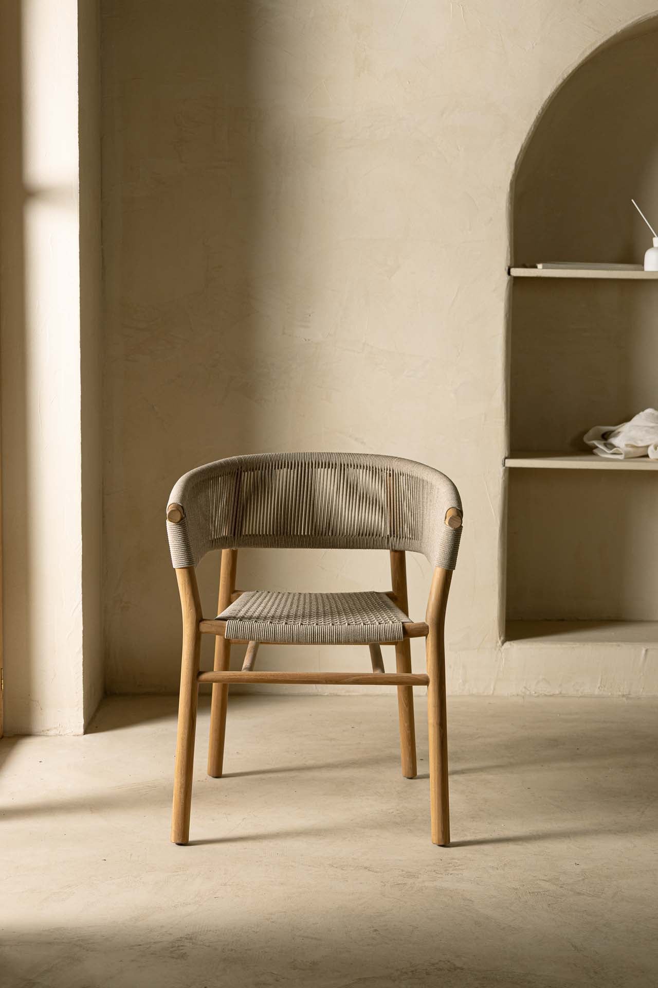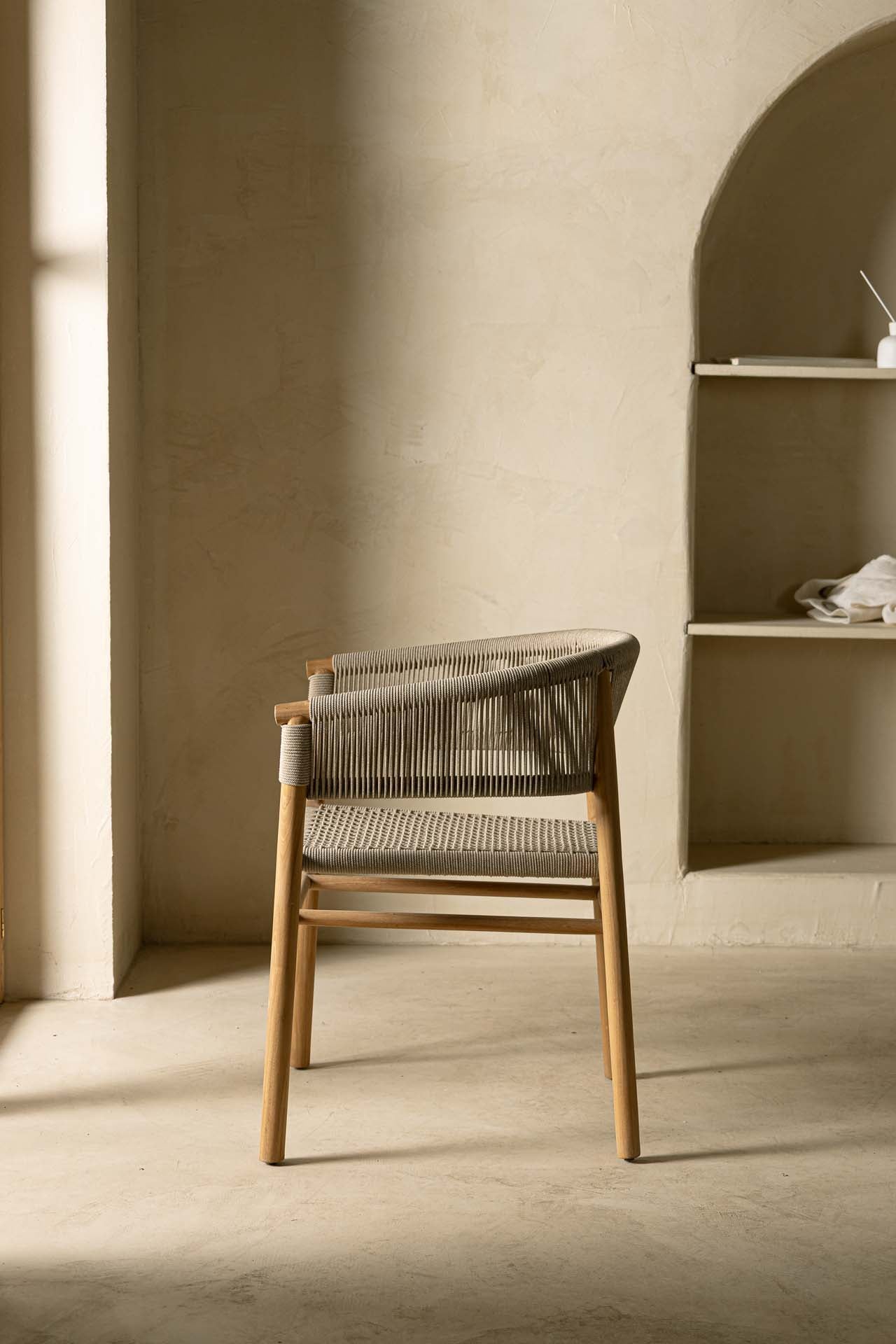 Καρέκλα Τραπεζαρίας με μπράτσα Talinn (60x54x75cm) από ξύλο teak. Κατάλληλη για εσωτερικό και στεγασμένο εξωτερικό χώρο. Ύψος καθίσματος: 44 cm. Ύψος μπράτσου: 69 cm. Συσκευασία 1 δέμα ανά τεμάχιο.