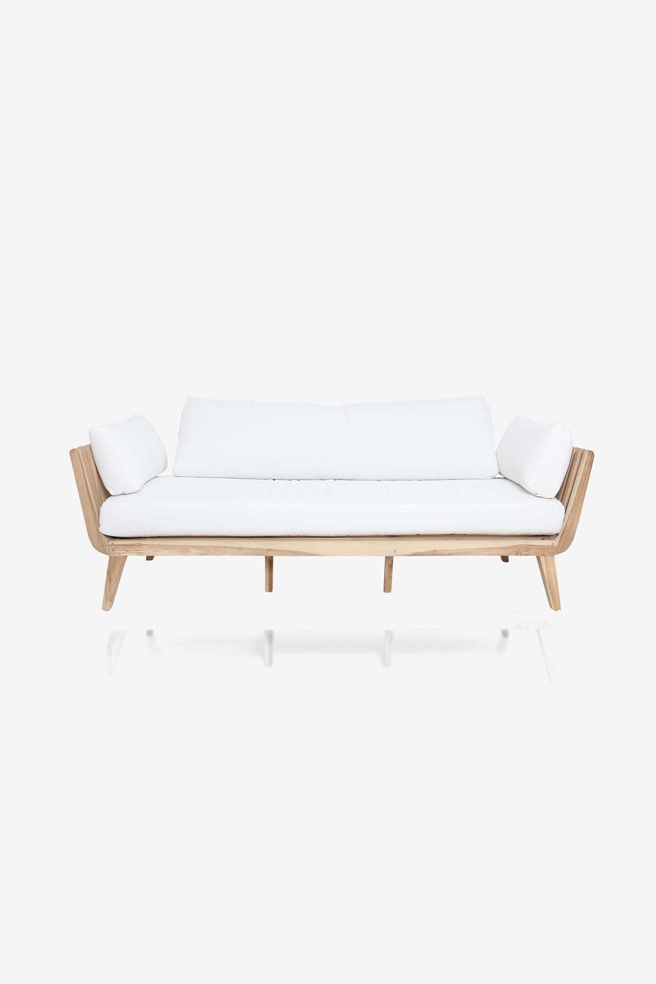 Καναπές Τριθέσιος Tokio (180x80x58cm) από ξύλο teak. Τα μαξιλάρια πάχους 10cm περιλαμβάνονται. Κατάλληλο και για εξωτερικό χώρο. Συσκευασία 1 δέμα ανά τεμάχιο.