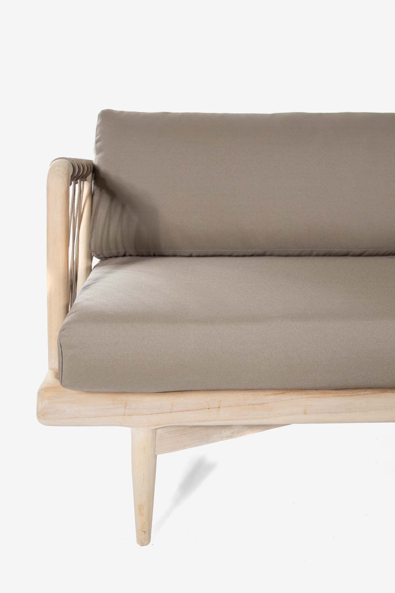 Καναπές Τριθέσιος Alba (188x68x62cm) από ξύλο teak με σχοινί εξωτερικού χώρου 5mm. Τα μαξιλάρια περιλαμβάνονται. Κατάλληλο και για εξωτερικό χώρο. Συσκευασία 1 δέμα ανά τεμάχιο.