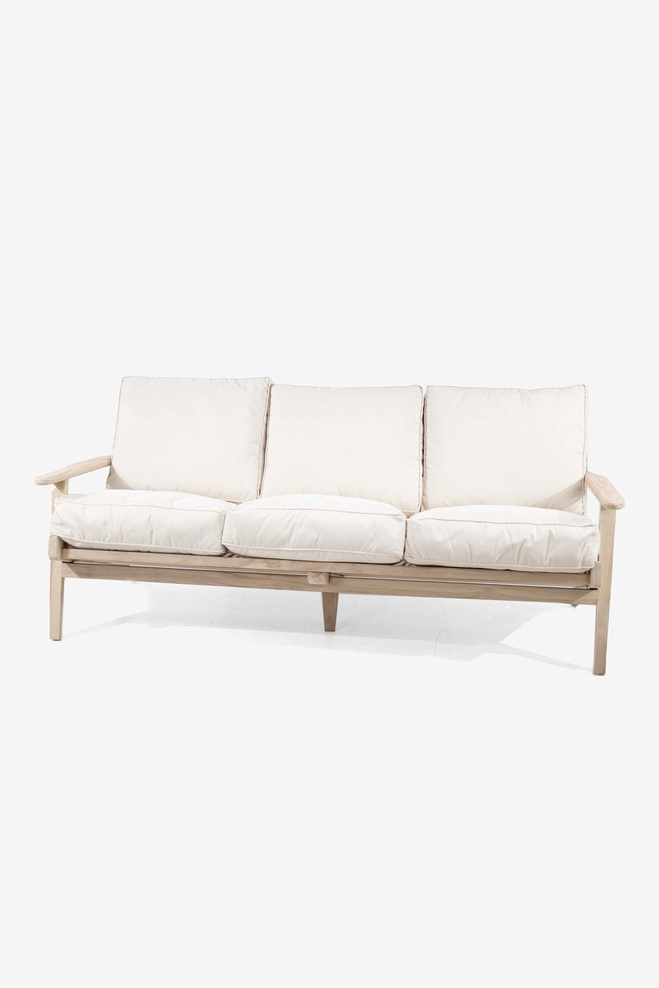 Καναπές Τριθέσιος Norm Outdoor Beige (202x88x74cm) από ξύλο teak. Τα μαξιλάρια μπεζ χρώματος περιλαμβάνονται. Κατάλληλο και για εξωτερικό χώρο. Συσκευασία 1 δέμα ανά τεμάχιο.