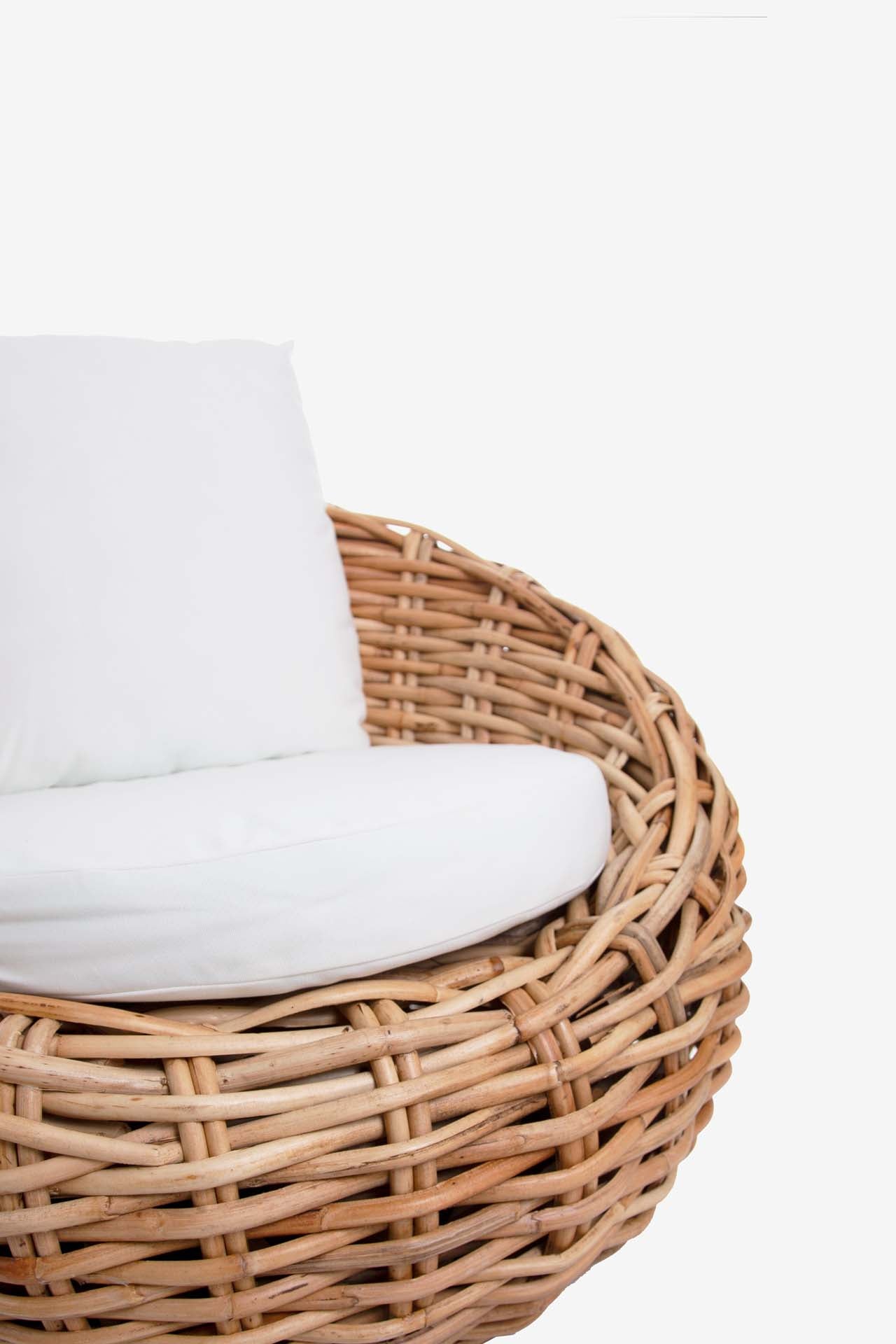 Στρόγγυλη Καρεκλοπολυθρόνα Cirebon Natural (100x88x71cm) από φυσικό ρατάν. Τα μαξιλάρια περιλαμβάνονται. Αν και ο καναπές μπορεί να χρησιμοποιηθεί σε εξωτερικό στεγασμένο χώρο, για μακροβιότητα συνιστάται να μην εκτίθεται μόνιμα σε εξωτερικές καιρικές συνθήκες, διότι το ρατάν είναι φυσικό υλικό. Προτείνεται για εσωτερικό ή στεγασμένο εξωτερικό χώρο. Συσκευασία ένα δέμα ανά τεμάχιο.