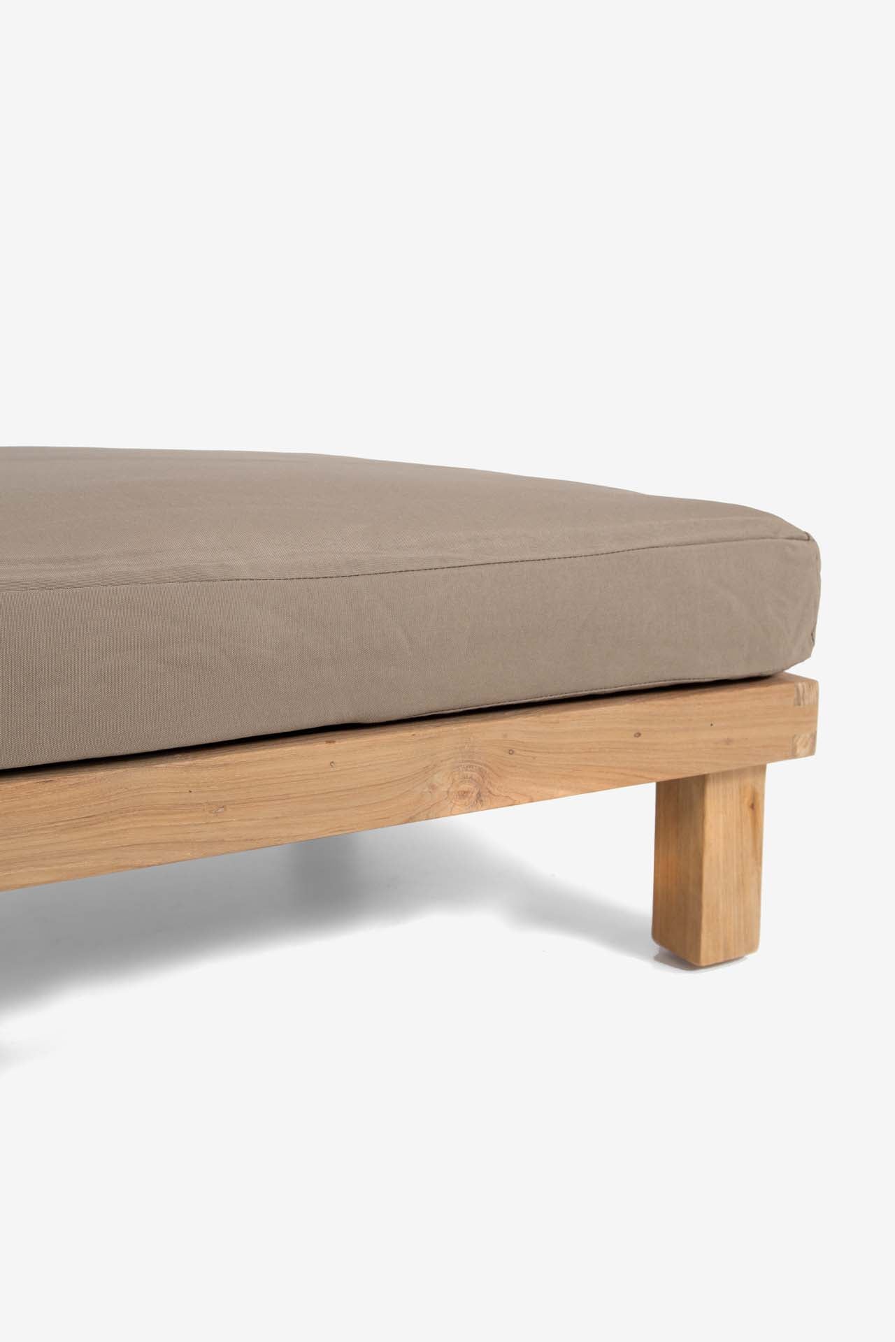 Σκαμπό Noniva (82x60x22cm) απο ανακυκλωμένο ξύλο teak παλιών ιαβανέζικων σπιτιών. Ύψος καθίσματος συνολικά 32cm. Τα μαξιλάρια πάχους 10cm περιλαμβάνονται. Κατάλληλο και για εξωτερικό χώρο. Συσκευασία 1 δέμα ανά τεμάχιο.