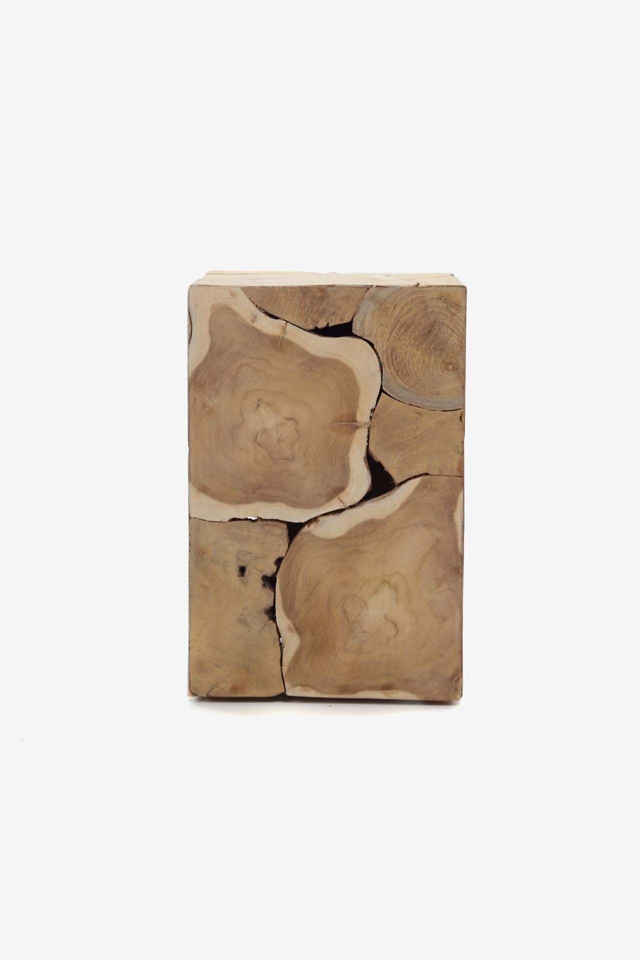 Σκαμπό Cube (30x30x45cm) από κομμάτια ρίζας ξύλου teak. Προτείνεται για εσωτερικό ή στεγασμένο εξωτερικό χώρο. Συσκευασία 1 δέμα ανά τεμάχιο.