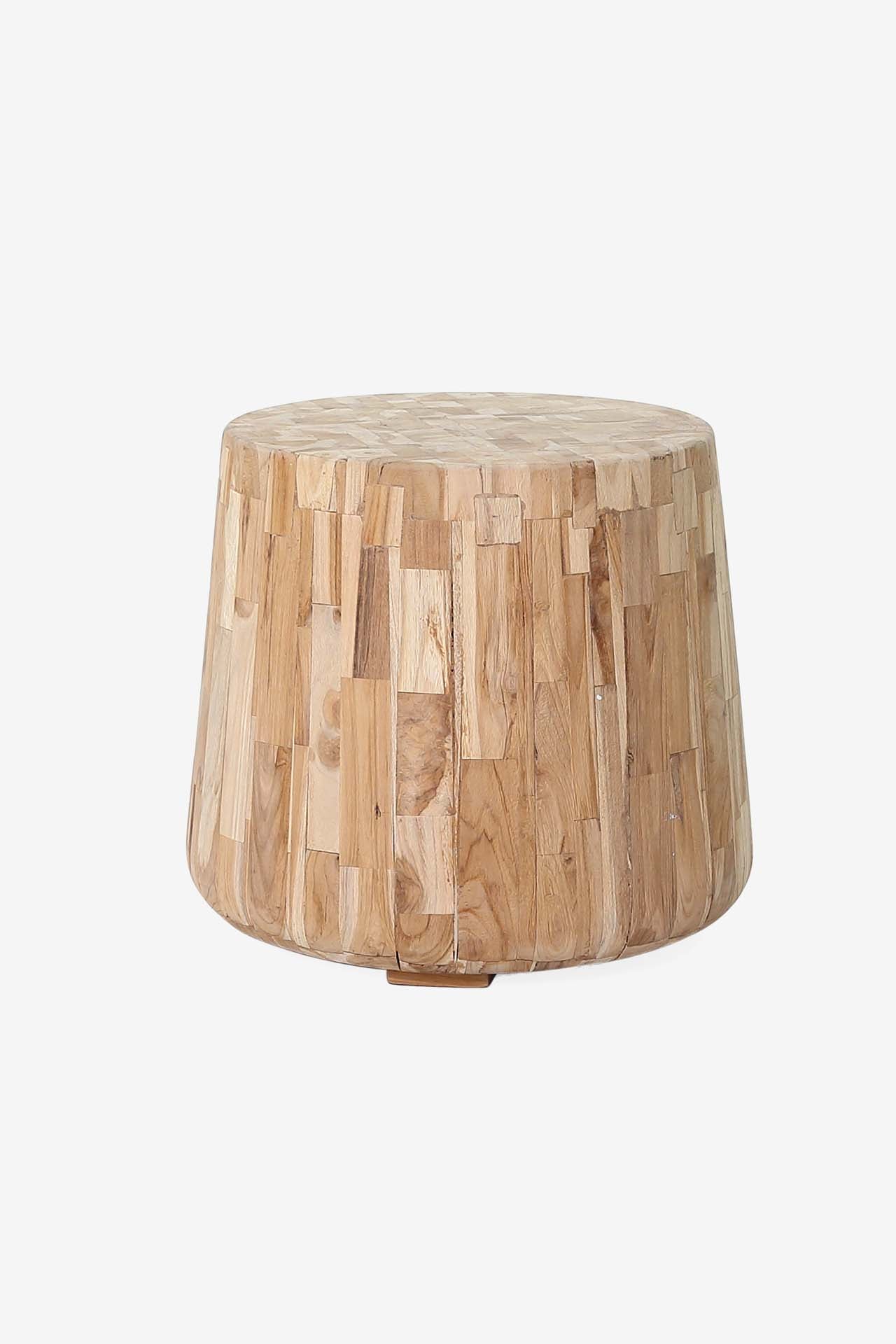 Side Table Renzo (60x52cm) made of small pieces of teak wood. Recommended for indoor or covered outdoor use. Packaging 1 parcel per piece.
