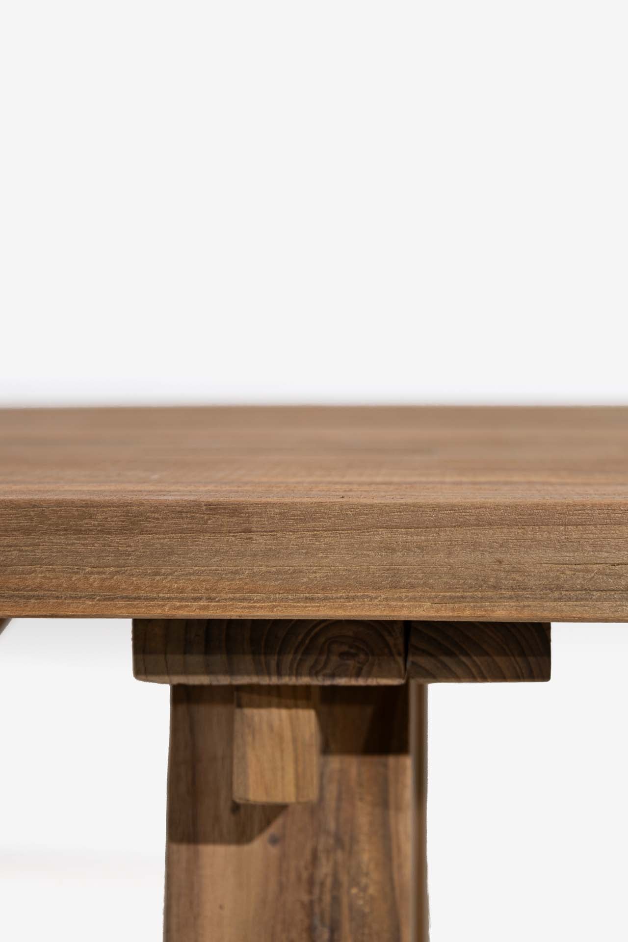 The reclaimed teak used in this piece, may exhibit subtle traces of its past life, including markings, bearing witness to its journey through the years. Each piece shows the remarkable story of reclaimed teak, characterised by distinct markings and an array of captivating colour shades. These characteristics serve as a testament to the authenticity and allure of this unique timber.