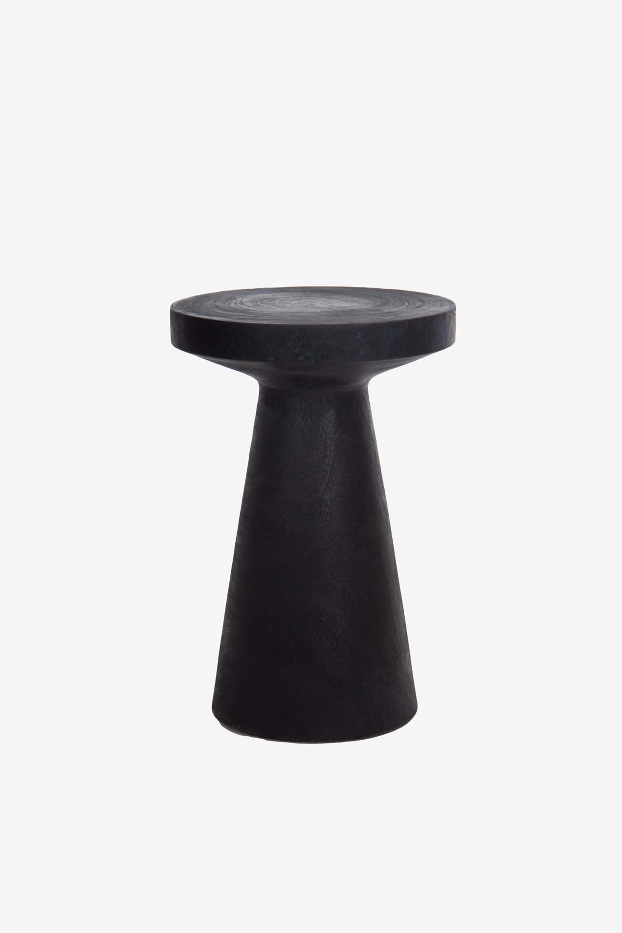 Side Table Lind Black (40x40x60cm) made of suar wood in black color. Each piece is unique in shade and shape. Cracks and unevenness in the surface of the wood may appear due to the nature of the wood. Recommended for indoor or outdoor covered space. Packaging 1 parcel / piece.