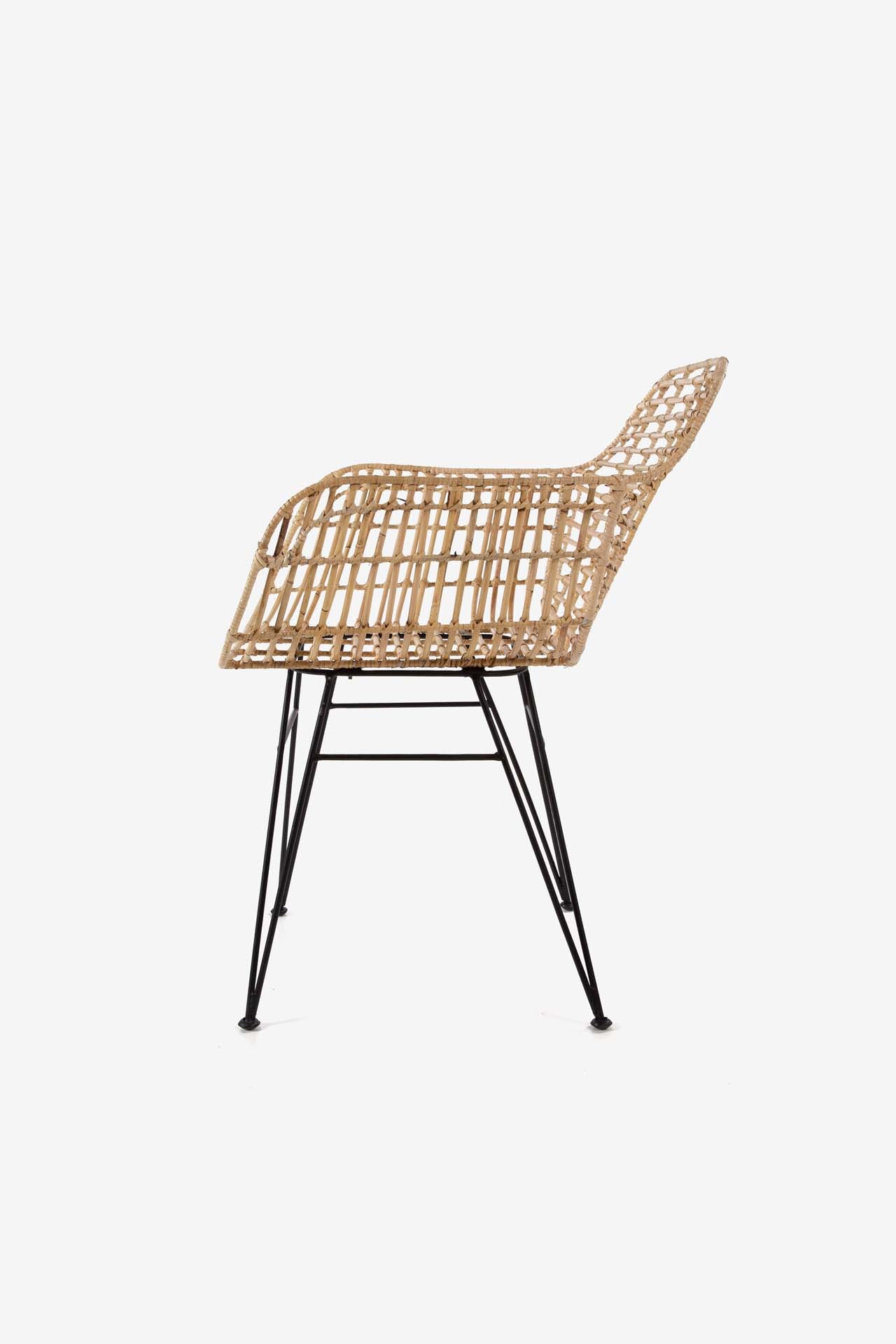 Dining Armchair Marea Black legs (57x60x82cm) made of natural rattan and metal legs. Assembly is required. Seat height 45x41 cm depth. Recommended only for indoor use. Packaging 2 parcels / piece. (1 parcel legs & 1 parcel seat)