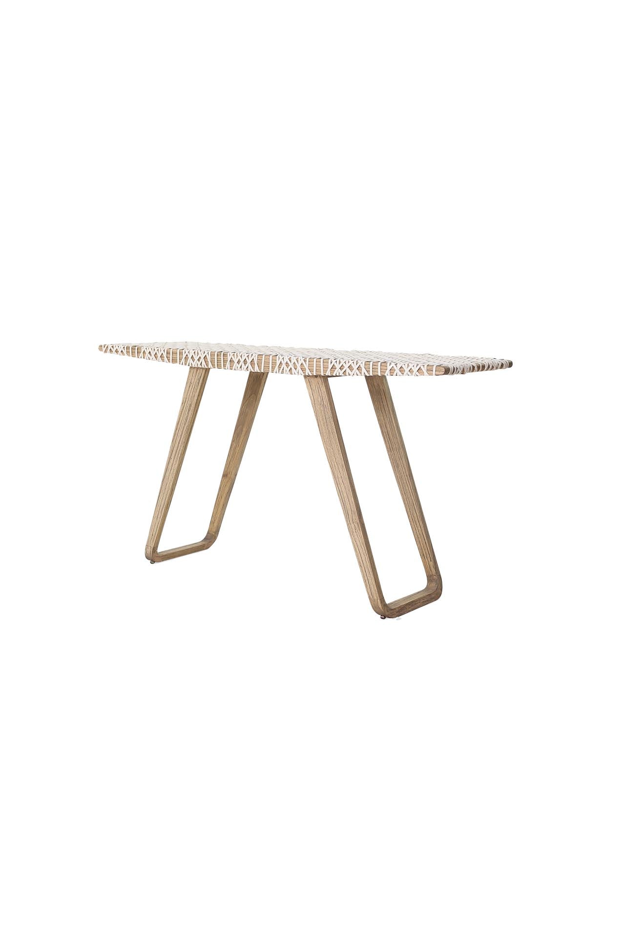 Κονσόλα Macau (140x40x76,5cm) από ξύλο mindi σε παλαιωμένο φινίρισμα με δερμάτινη πλέξη στο κάθισμα. Προτείνεται για εσωτερικό ή στεγασμένο εξωτερικό χώρο. Συσκευασία 1 δέμα ανά τεμάχιο.
